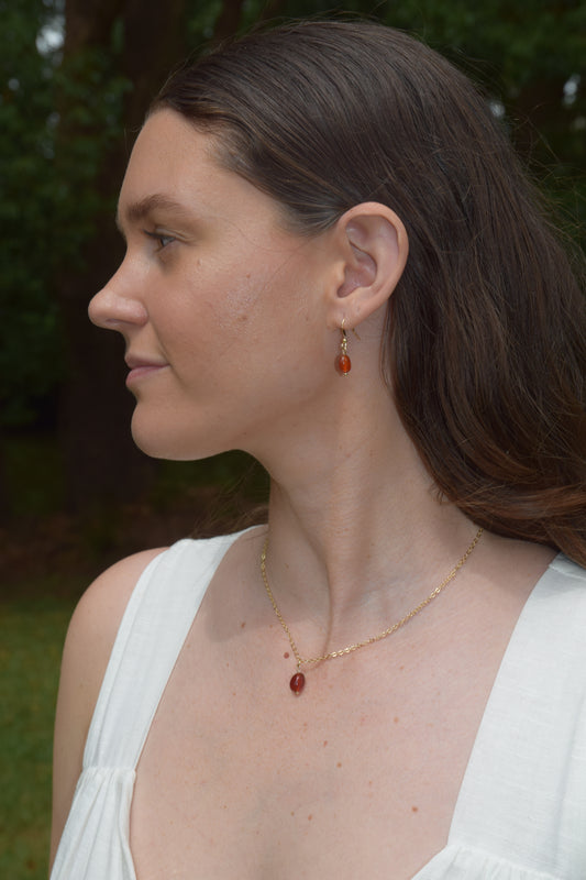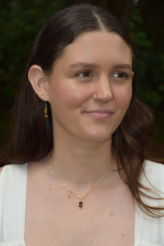 Each piece has its own unique variation of the stone used and is available in silver or gold.